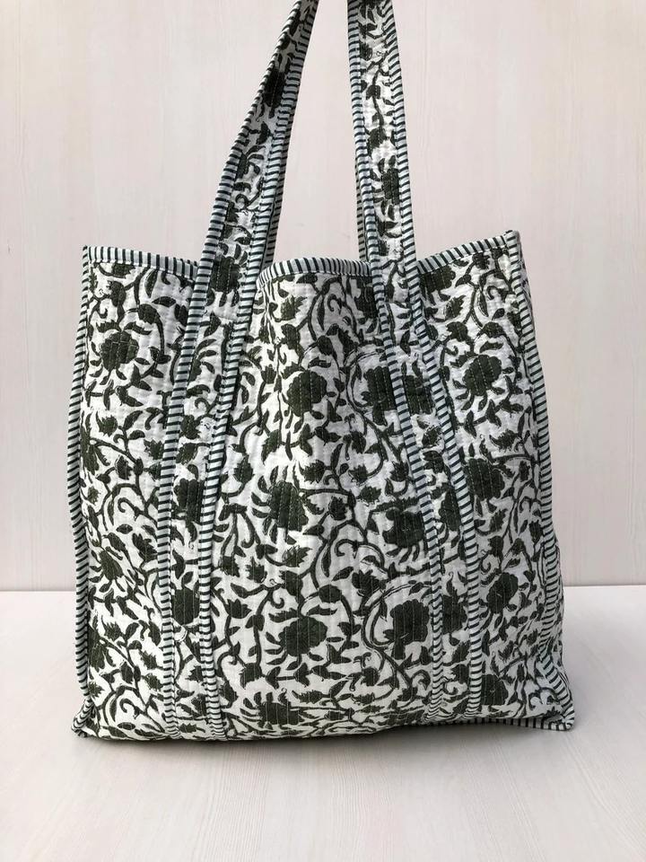 Handmade Large Tote Bag Eco-Friendly Quilted Cotton Boho Floral Stripe Stylish Vintage Lady Design Great Women's Shoulder Bags