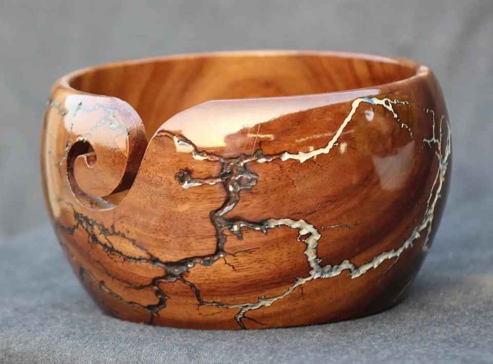 Handmade Large Wooden Eco-Friendly Fashion Portable Yarn Holder Yarn Bowl Lichtenberg Art Knitting Accessories Durable Crochet