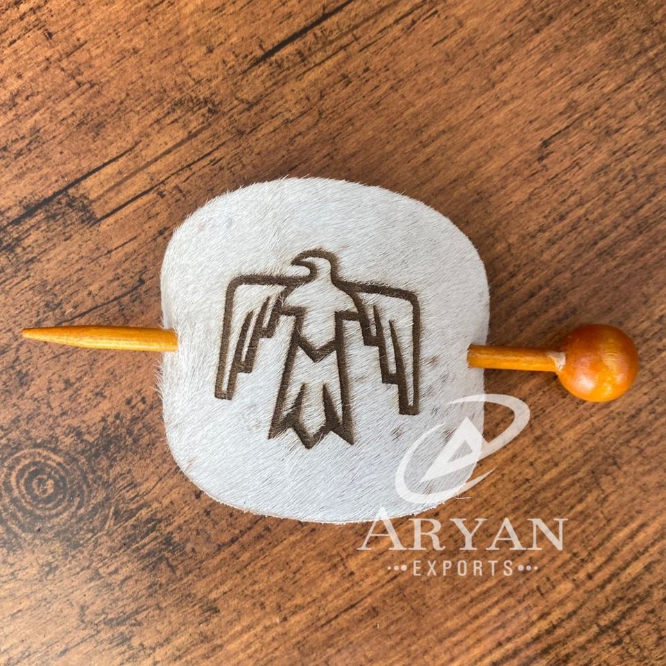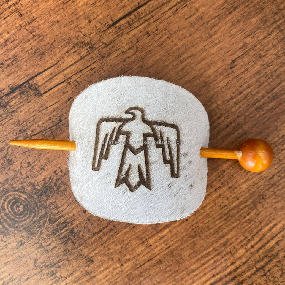 Handmade Laser Engraving Cowhide Leather Hair Barrette with Stick for Women's Custom Genuine Leather Hair Slide Leather Hair Pin