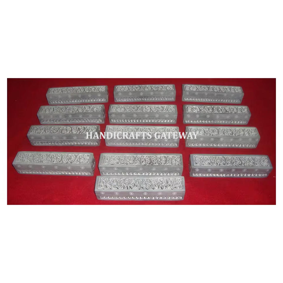 Handmade Latest Design Natural Soapstone Carving Jewelry And Pencil Box With Flower Leaf Design Gifts Packaging Box For Exporter