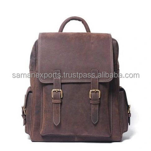 Handmade Leather Backpack With Matte Finish & Fully Adjustable Strap Top Indian Supplier Manufacturer Saman Exports
