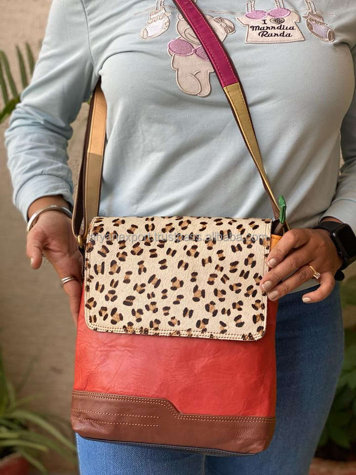 Handmade Leather Bag With Animal Print Recycled Leather Purse Colorful Woman Handbags Shoulder Bag Medium Crossbody Saddle Purse