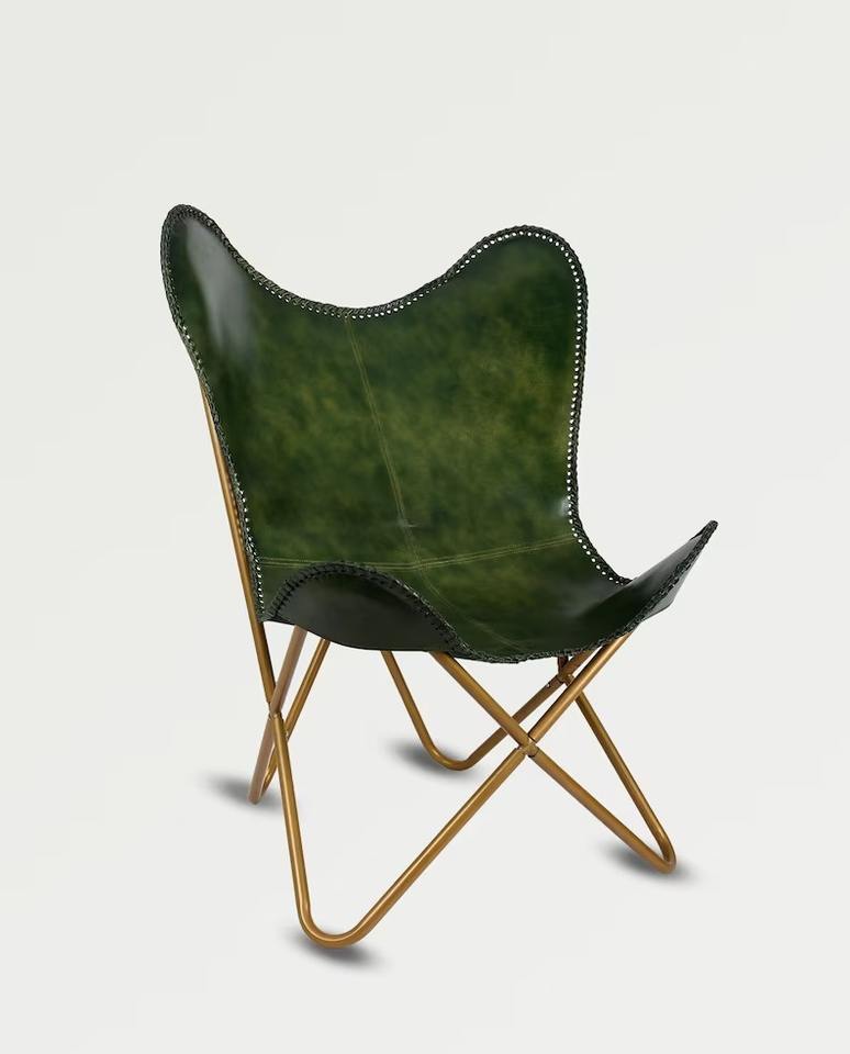 Handmade Leather Butterfly Folding Leisure Chair for Home Camping Bedroom Outdoor Relaxing Stylish for Living Room Decor