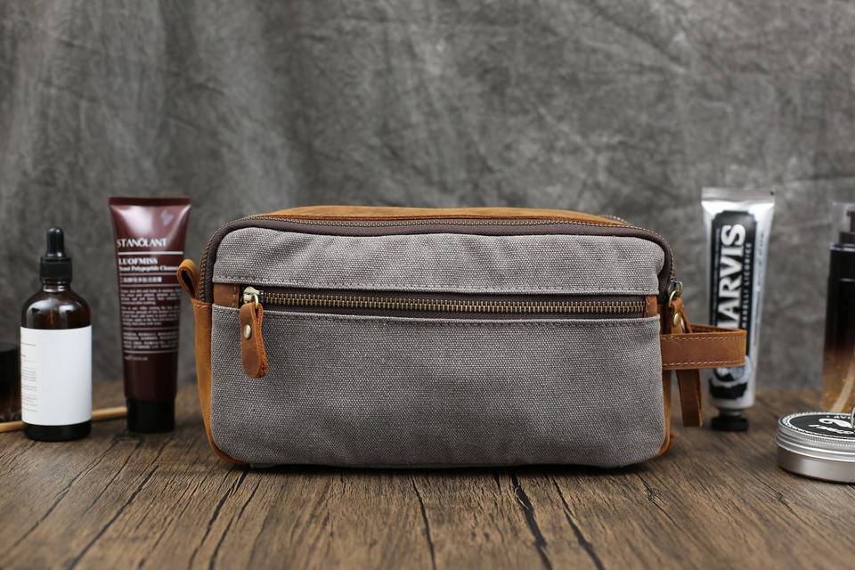 Handmade Leather Canvas Dopp Kit for Bag Unisex Wash Grooming Cosmetic Shaving Travel Organizer Zipper Eco-Friendly