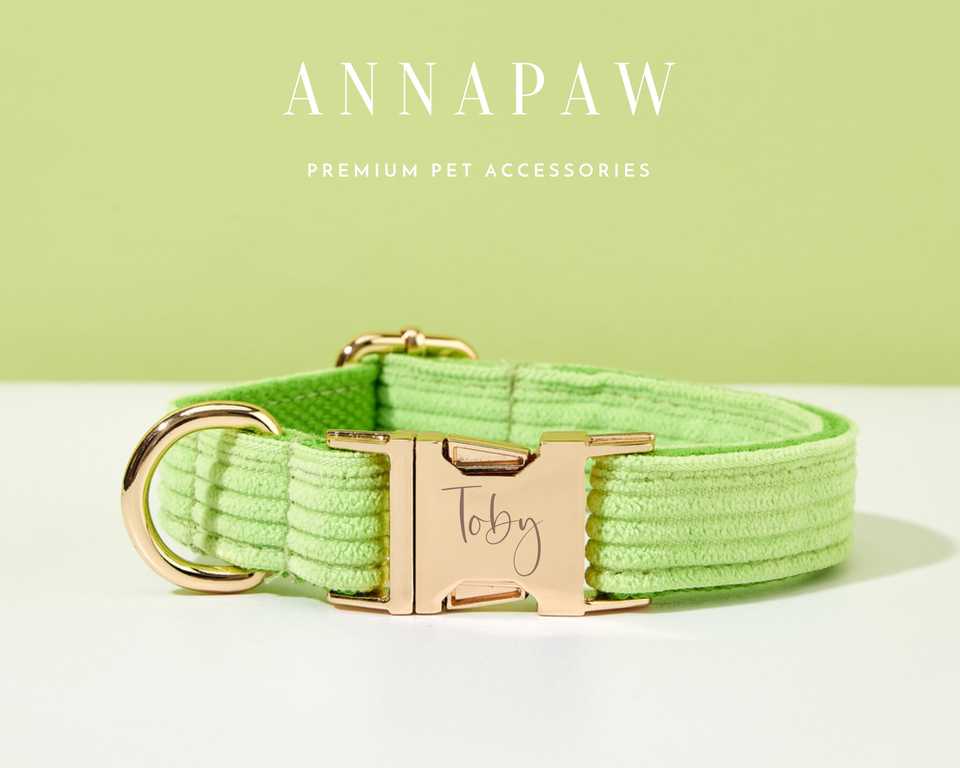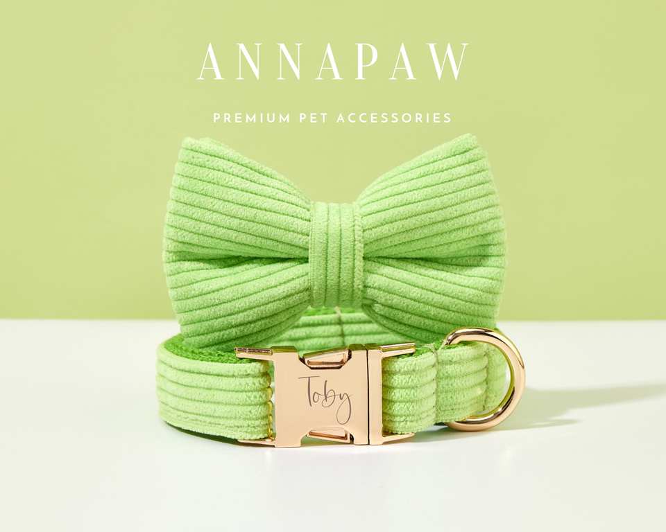 Handmade Leather Corduroy Bow Tie Set with Rivet Detail Custom Dog Leash & Puppy Collar Free Engraved Name Birthday Gift