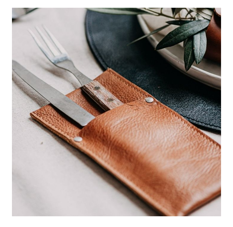 Handmade Luxury Durable Leather Cutlery Holder Roll Utensil Organizer Waterproof Shockproof Function for Restaurant Table