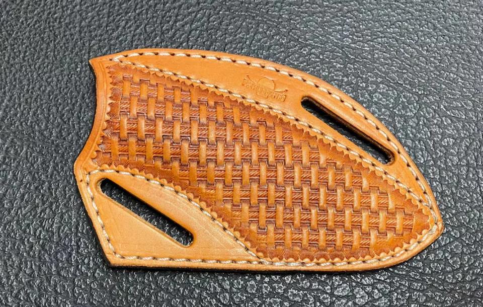 Handmade Leather Fixed Blade Knife Sheath with Leopard Engraved Design Customizable OEM Kitchen Use Knife Holster