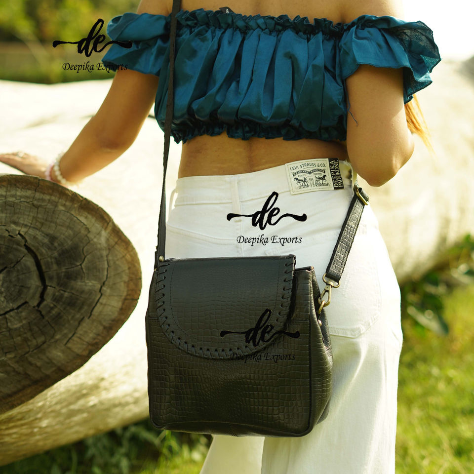 Handmade Leather Handbag Crocodile Leather Sling Bag Shoulder Bag Stylish Leather Bags for Women