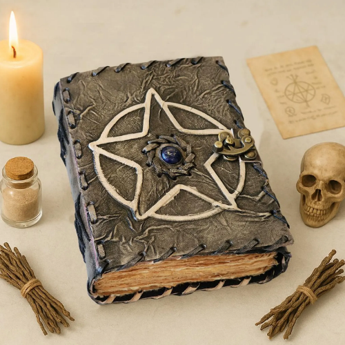 Product name:Handmade Leather Journal with Pentagram Vintage Spell Book