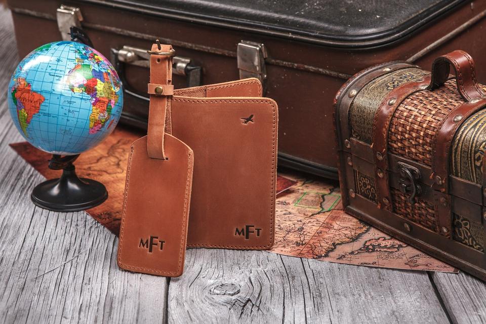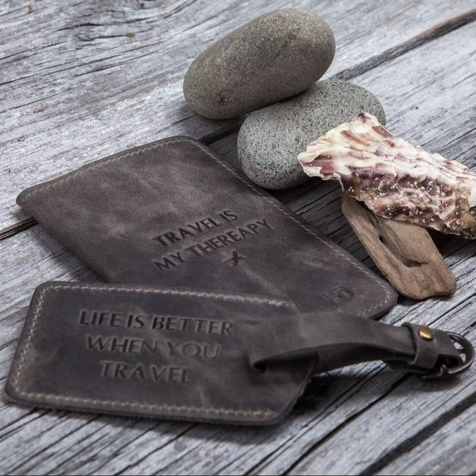 Genuine Leather Passport Holder & Travel Tag Sets