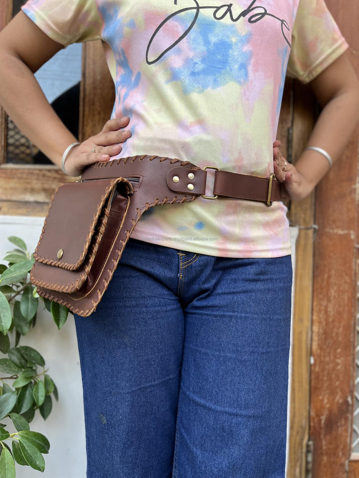 Handmade Leather Waist Bag Stylish Multi Uses Travel Belt Unisex Hip Pocket Belts Leather Pocket Belts