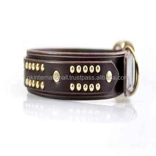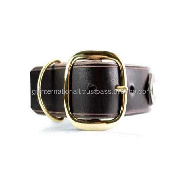 Handmade Leather and Brass Dog Collar Thick Leather Dog Collar Custom Black Leather Dog Pet Collar with Brass Rivets Buckles
