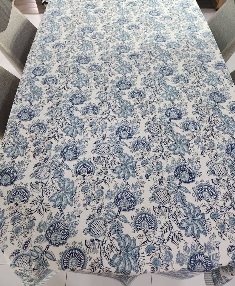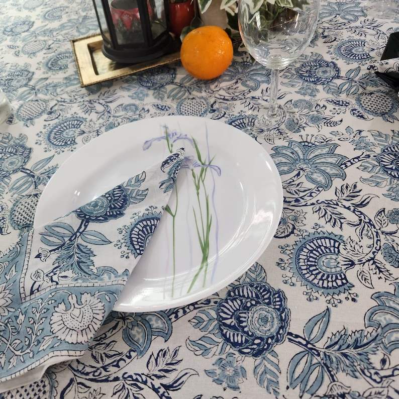 Handmade Light Blue Luxury High-quality Washable Floral Block Print Cotton Tablecloth Perfect Square Dining Decorative Table