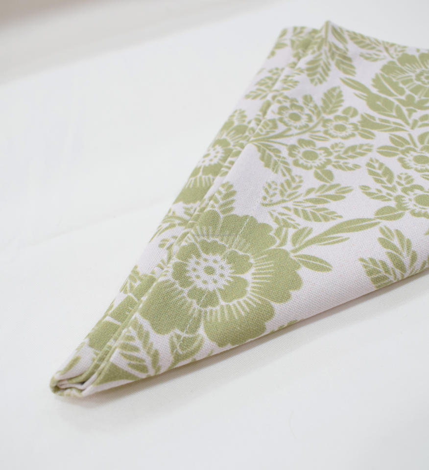 Handmade Linen Cotton Napkin Light Green Floral Design Soft for Kitchen Dining Table and Party Setup
