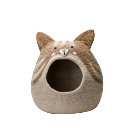 Handmade Luxurious New Zealand Merino Wool Pet Bed Cute Pink Cheeks Animal Pattern Soft Cozy Small Pet Cave