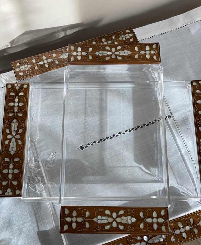 Handmade Luxury Acrylic and Wood Date & Sweet tray with Mother of Pearl Inlay Lid Custom Size Ramadan Mubarak and Eid Gift