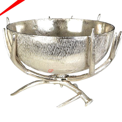 Handmade Luxury Aluminum Metal Round Bowl Fruit Salad Vegetable Snacks Serving Bowl with Decorative Handles Food Serving Bowl