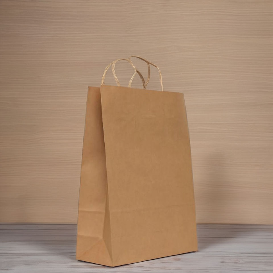 Handmade Luxury Brown Kraft Paper Bag Twisted Handles Custom Printed Logo Eco-Friendly Hot Stamping Surface Durable Supermarket