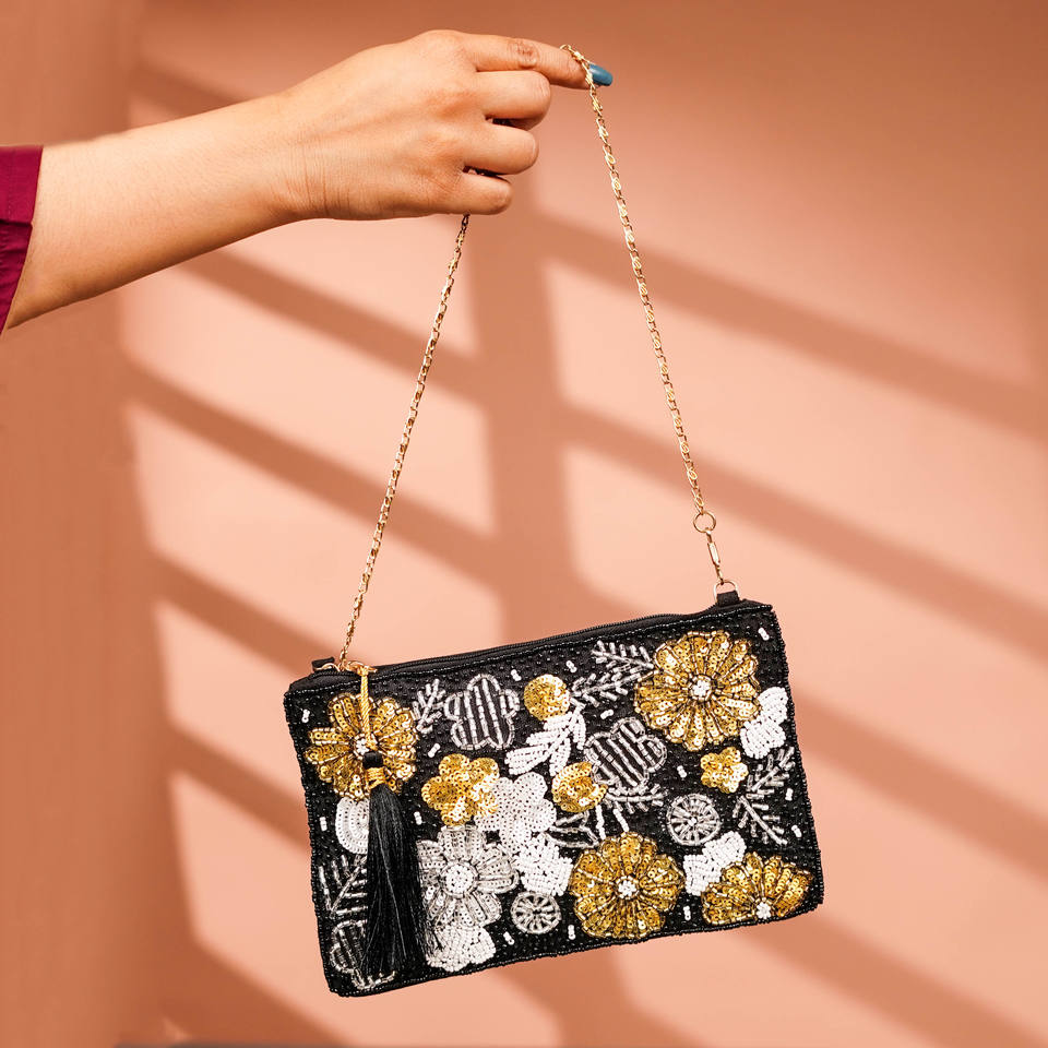 Item:Stylish Multicolor Glass Beaded Cotton Clutch Bag