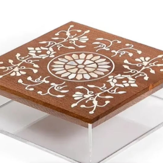 Handmade Luxury Dessert and Dry Fruit Box in Wood and Acrylic with MOP Detailing Ideal for Gifting and Tabletop Decoration