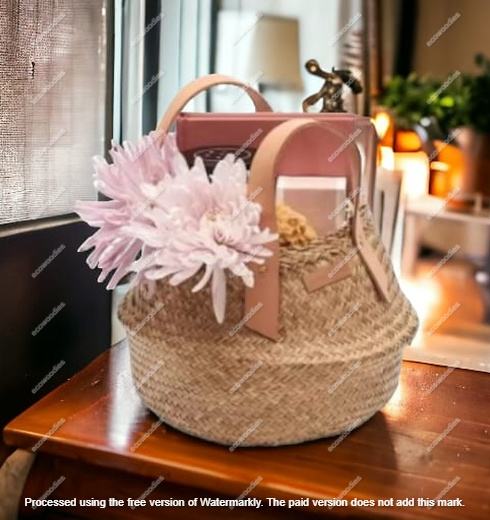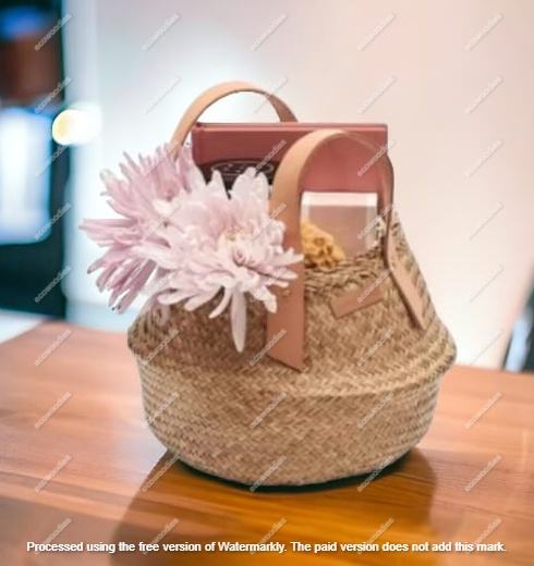 Handmade Luxury Eco-friendly Seagrass Belly Storage Basket New Gift Box for Mother's Day Complemented Artificial Flowers