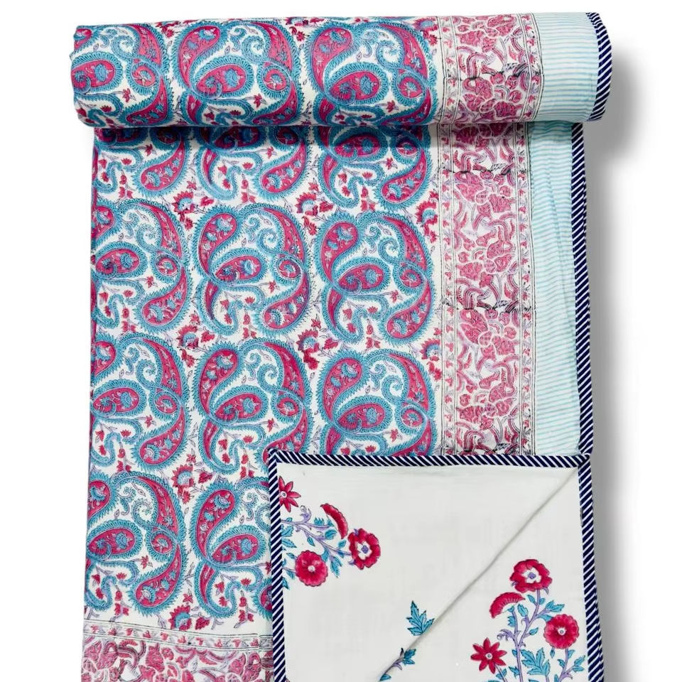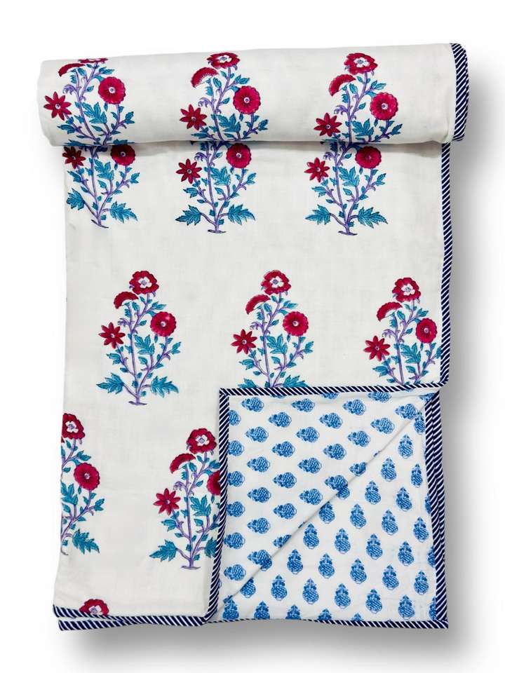 Handmade Luxury Indian Jaipuri Quilt Reversible Floral Print Bed Spread Hand Block Print Washable Home Hotel 100% Cotton