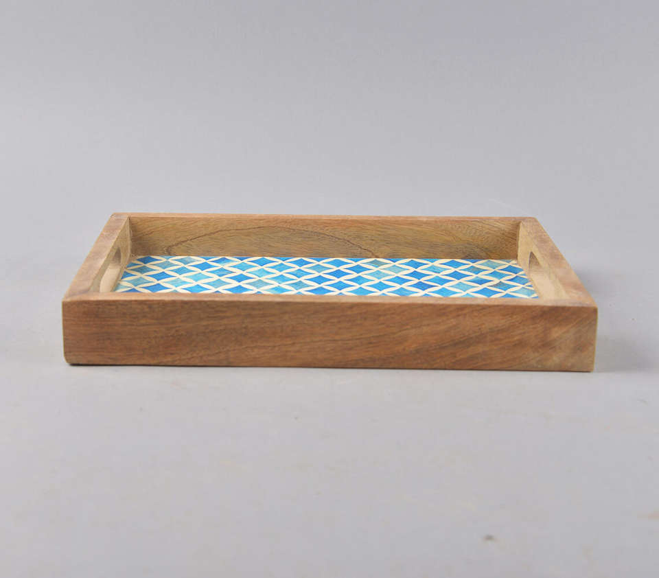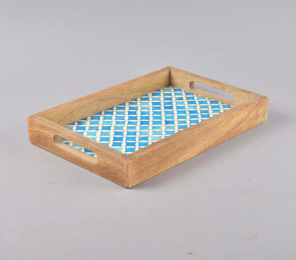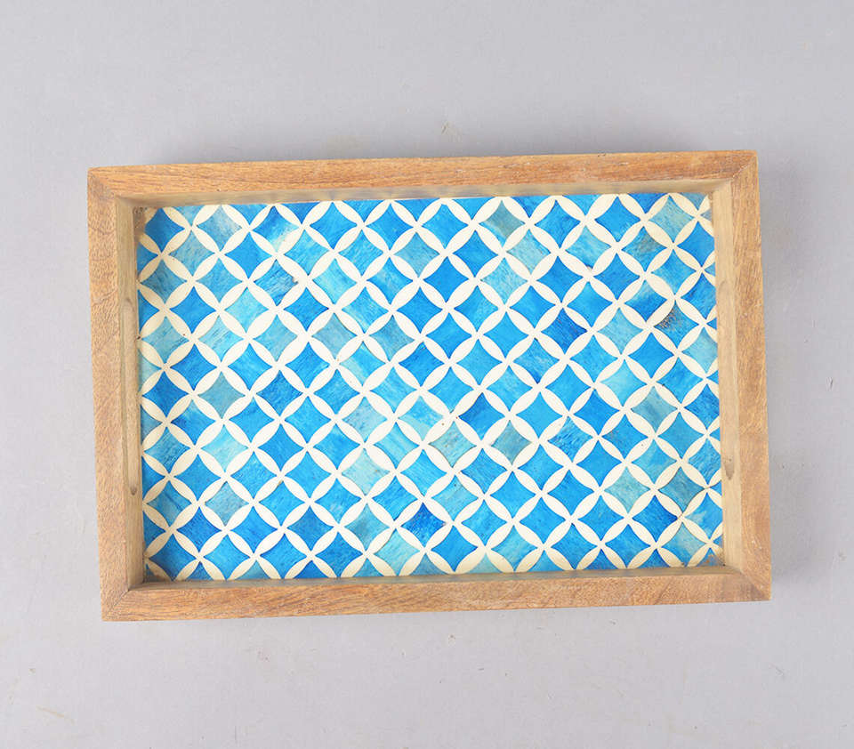 Handmade Luxury Iridescent Mother Of Pearl Inlay Serving Tray Featuring Elegant Quatrefoil Moroccan Pattern Premium Rectangular