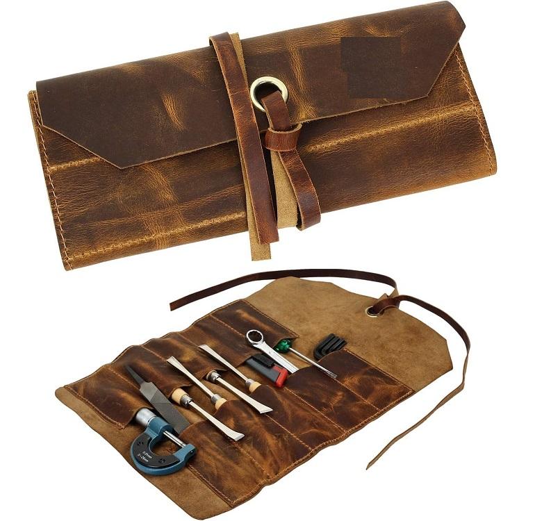 Handmade Luxury Leather Tool Roll Bag Small Durable Organizer for Woodworking Hand Tools