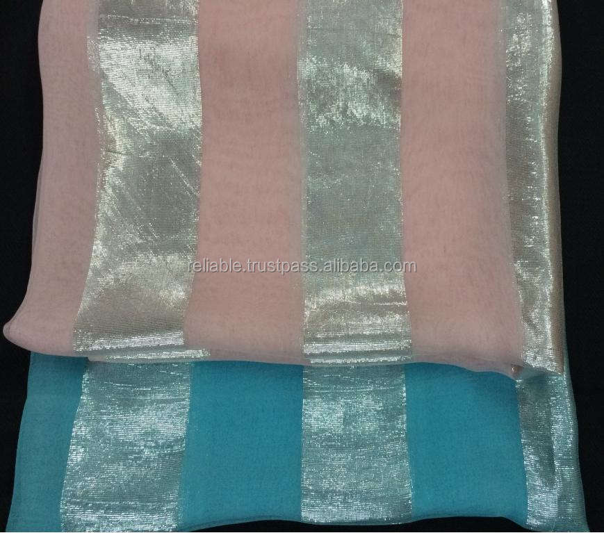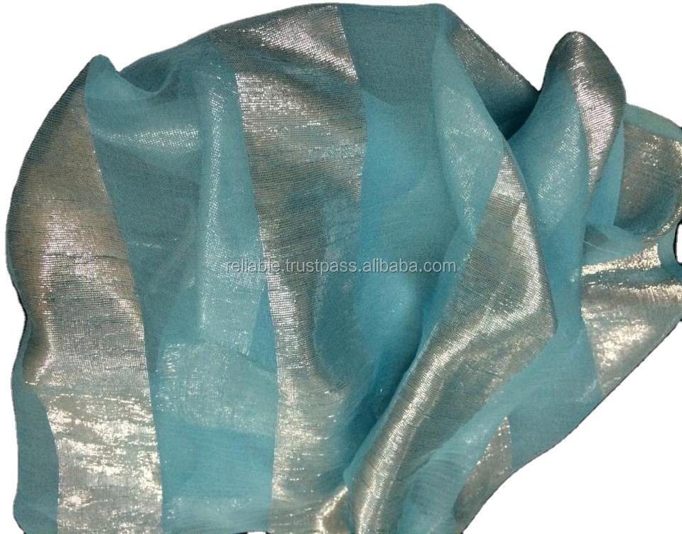 Handmade Luxury Medium Soft 100% Silk Scarves Winter Fresh Arrival Popular Lurex Chiffon Sky Blue Grey Colour Indian
