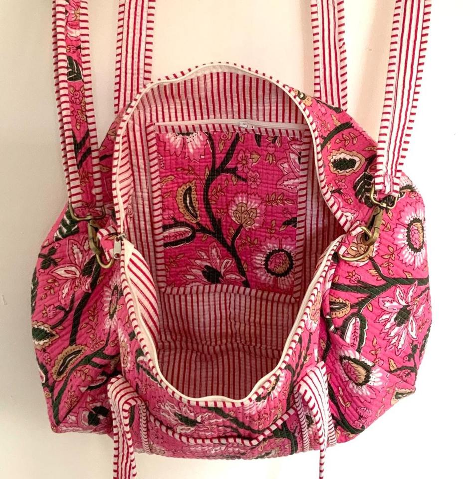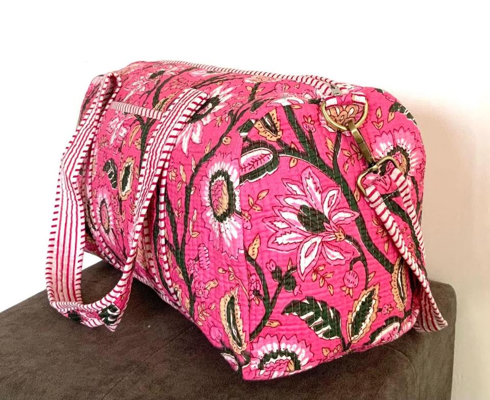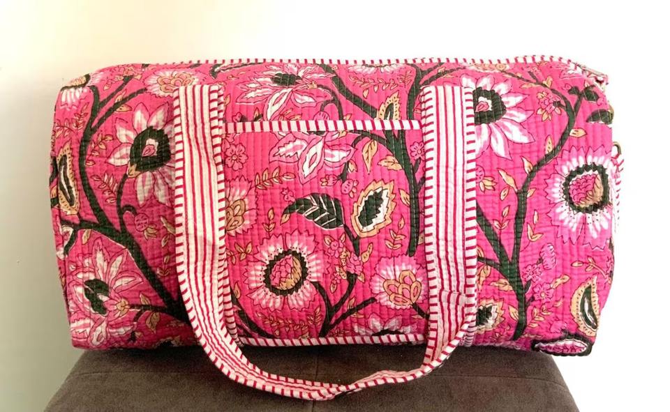 Handmade Luxury Sport Cotton Block Print Duffle Bag Large Capacity Travel Gym Yoga Quilted Eco-Friendly Durable Shoulder Bag
