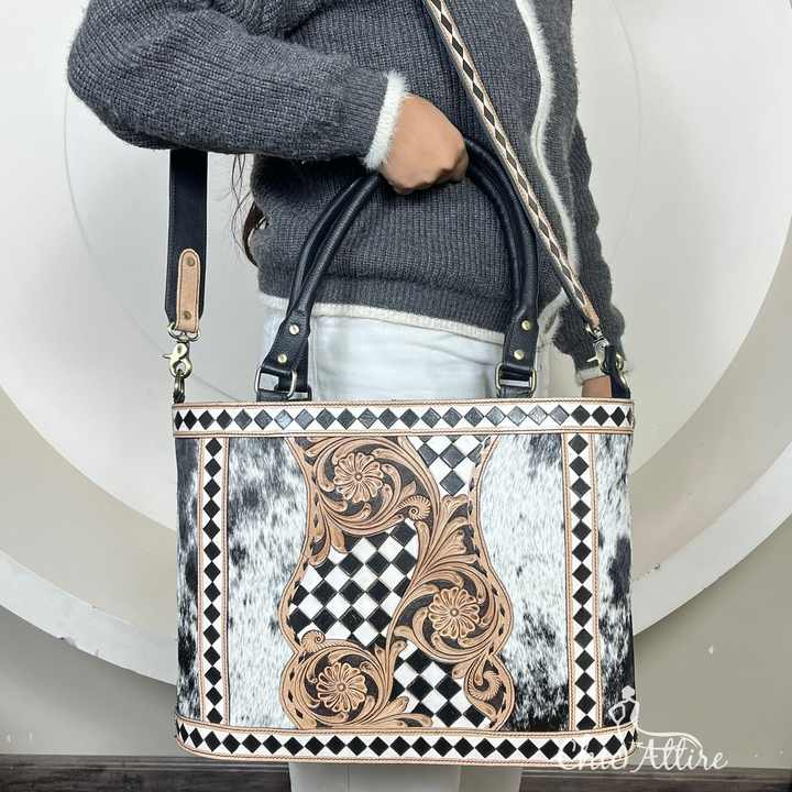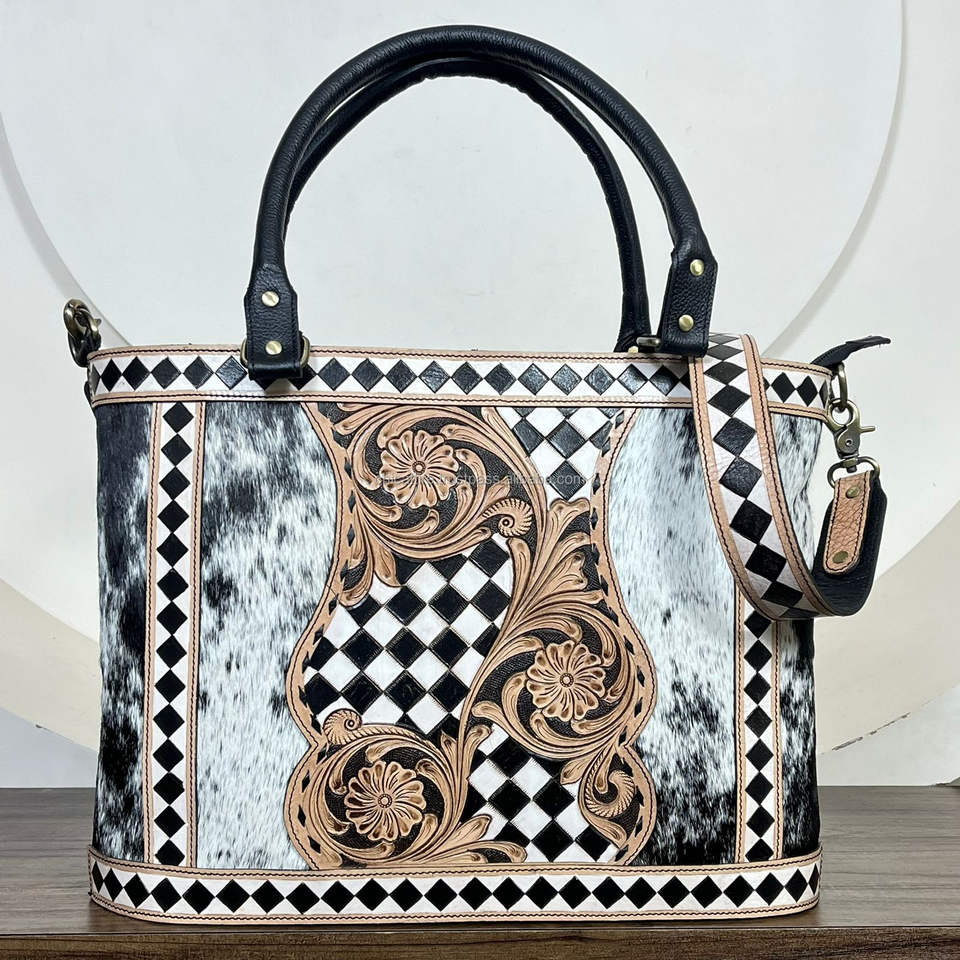 Product name:Hand Tooled Checkered Leather Tote Bags