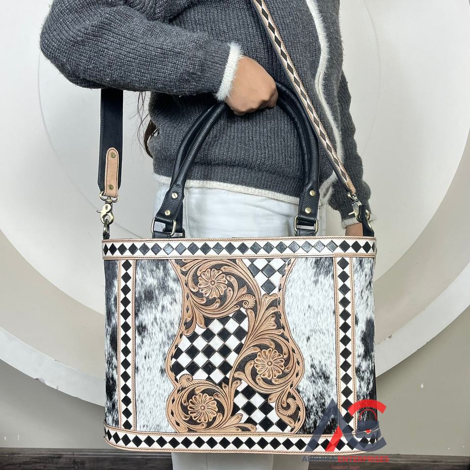 Product name:Hand Tooled Checkered Leather Tote Bags