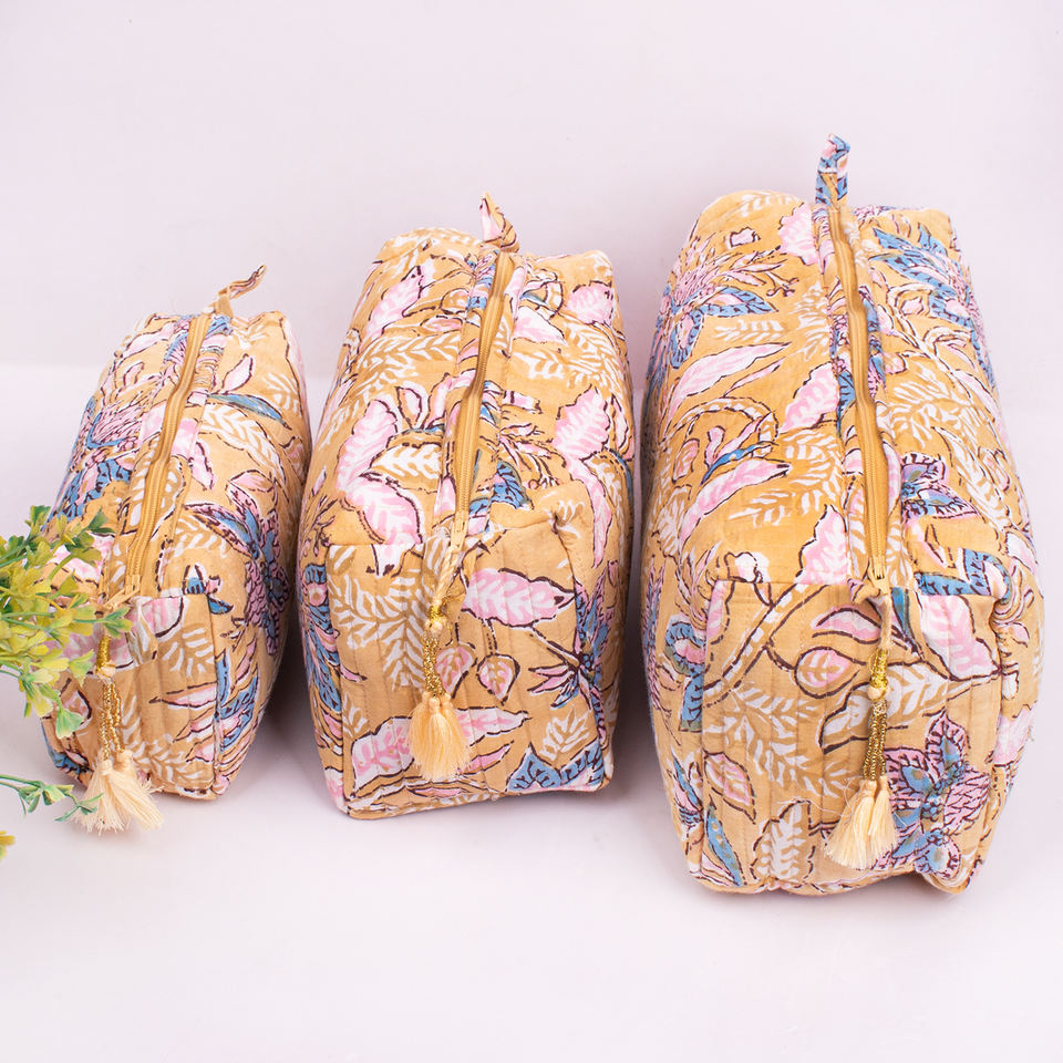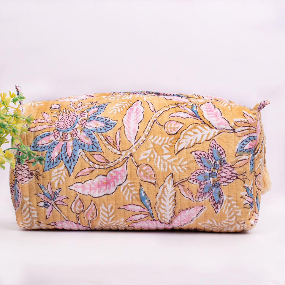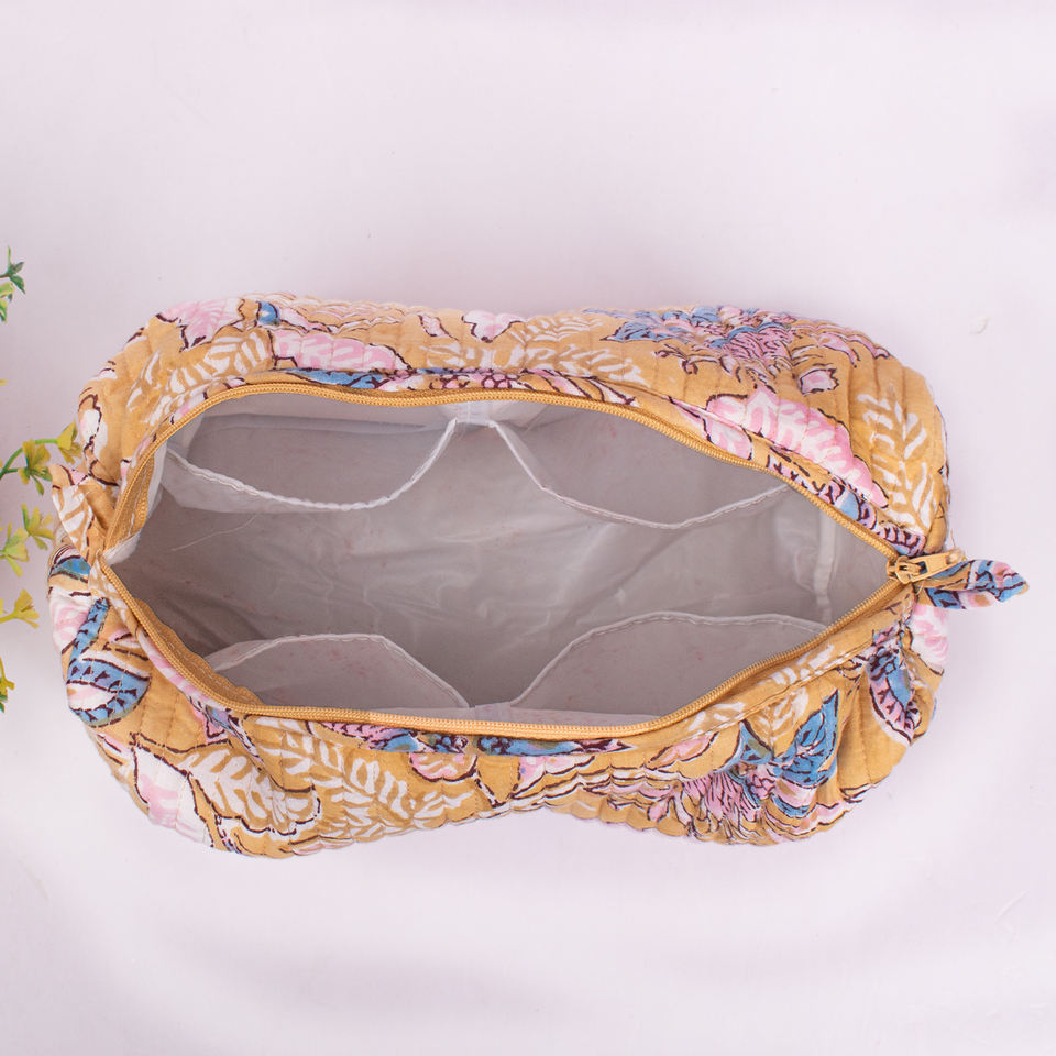 Handmade Luxury Water Resistant Eco-Friendly Floral Printed Reusable Multifunction Large Portable Makeup Bag Organic Cotton