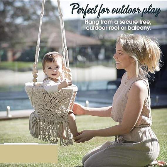 Handmade Macrame Baby Swing Hammock for Indoor and Outdoor for Nursery Garden Park Bedroom Living Room Decor