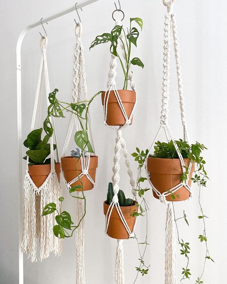 Handmade Macrame Cotton Rope Eco-Friendly Classic Style Customizable Hanging Planter Flower Pot Holder for Home Garden Hotel