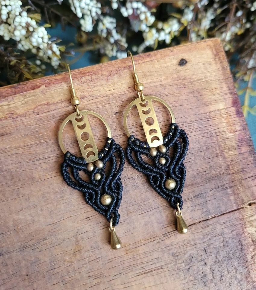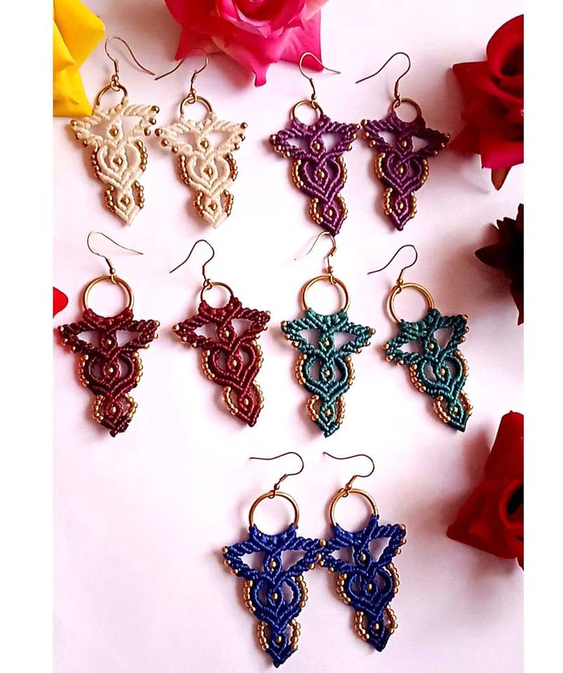Handmade Macrame Earring with Gold Plated Brass Beads Amazing Mix Thread Color Unique Shape Dangle Hoop Valentine's Gift