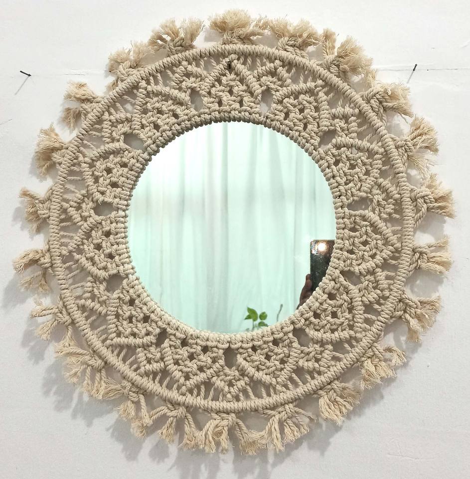 Handmade Macrame Mirror Wall Hanging Woven Boho Round Mirror Frame for Living Room Bedroom Vanity Home Decor Wall Art