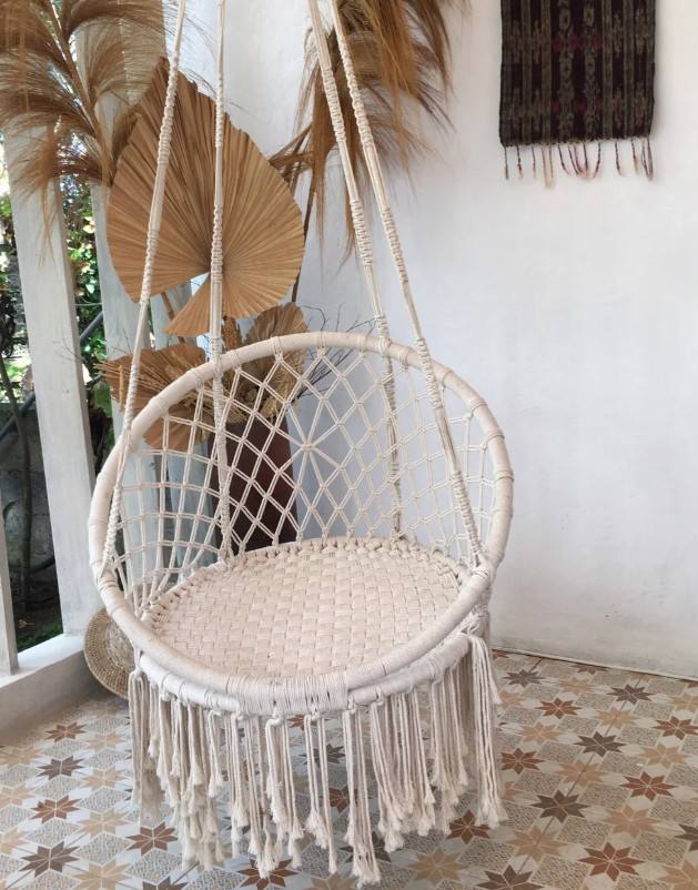 Handmade Macrame Swing – Rattan Boho Decor, Tasseled Hammock