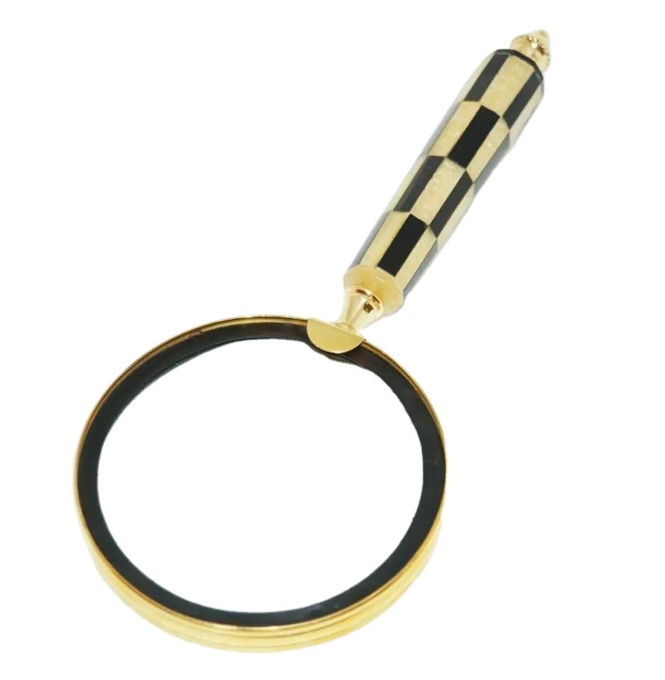 Handmade Magnifying Glass with Black and White Wooden Handle Brass Fitting Optical Instrument for Wood Craft Christmas Gift