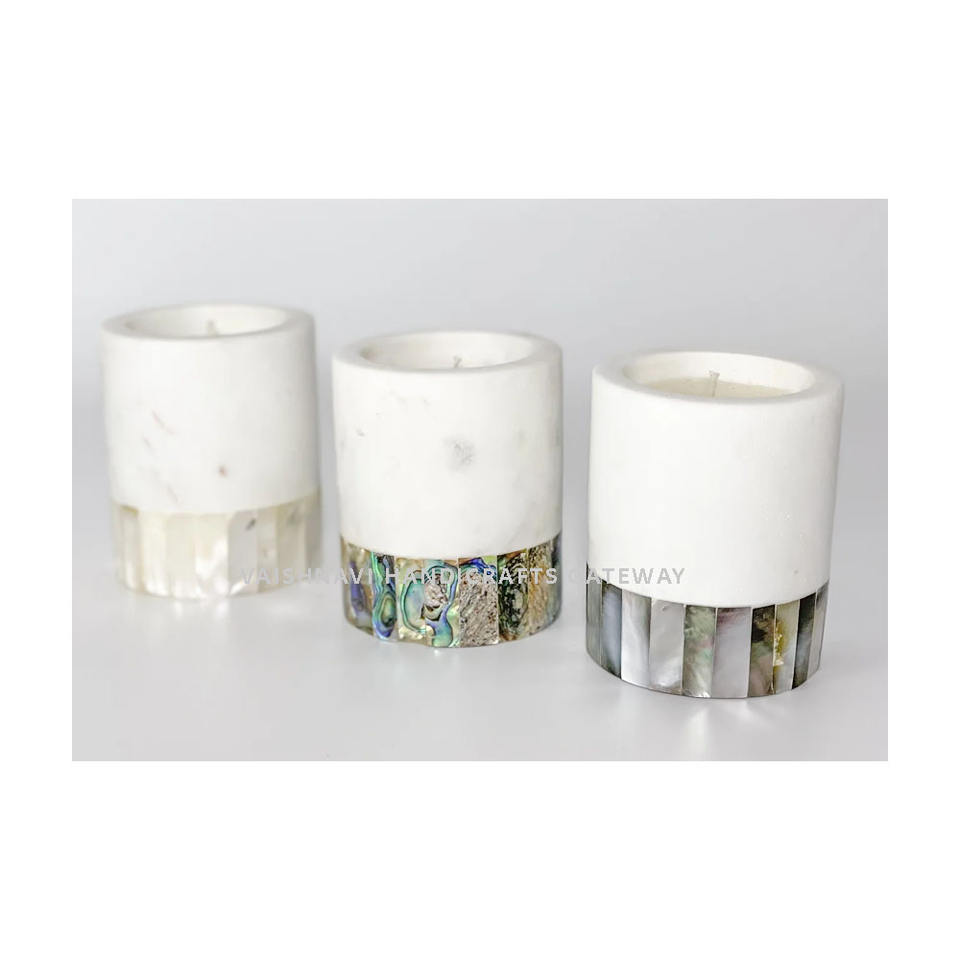 Product Name:Marble With Natural Abalone Stone Work Candle Holder For Home