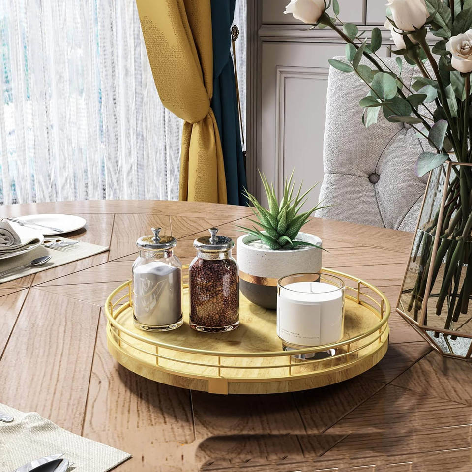 Handmade Mango Wood Lazy Susan Turntable for Kitchen Countertop Dining Table Rotating Pantry Organizer Spice Rack Serving Tray