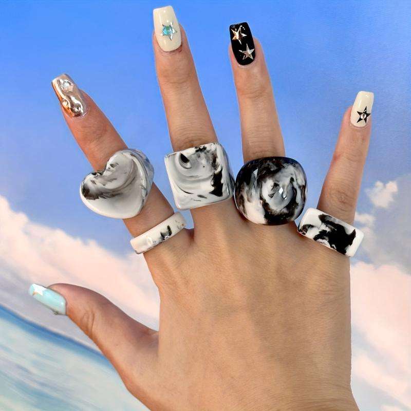 Handmade Marble Effect Resin Finger Ring Set Mixed Color Chunky Acrylic Band Rings Model Angel Unique Jewelry Women Girls