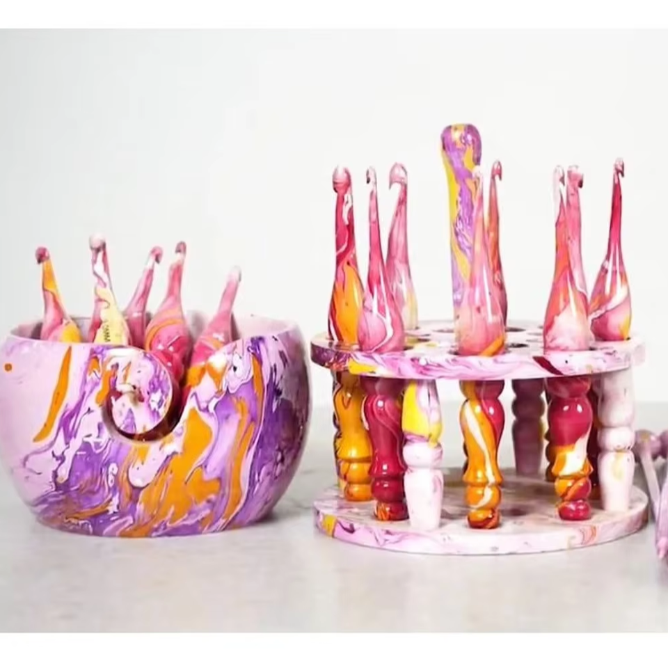 Handmade Marbled Crochet Hook Set with Yarn Bowl & Knitting Needles For knitting and crocheting