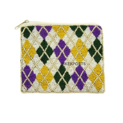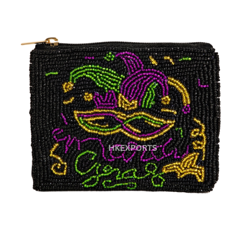 Handmade Mardi Gras Beaded Coin Purse Unique Carnival Party Favor Zipper Multicolor Festive Accessory Parade Essentials 3pcs