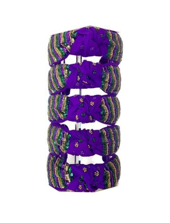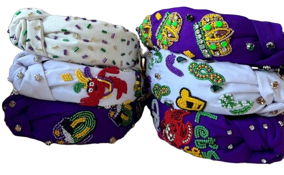 Handmade Mardi Gras Top Knotted Fleur-de-lis Headbands New Orleans Nola Carnival Hair Accessories Beaded Design Representing
