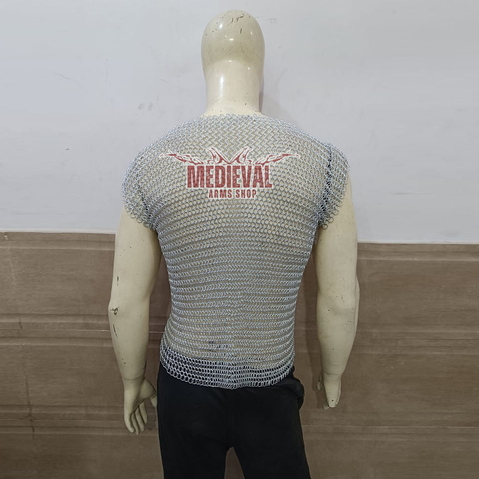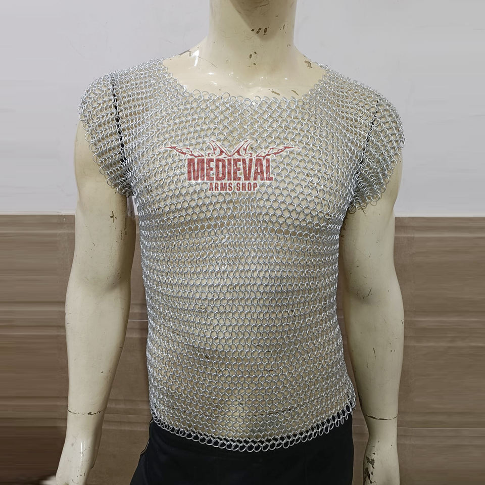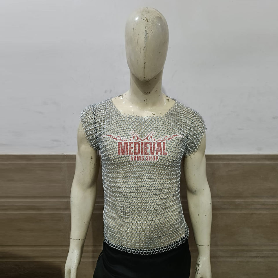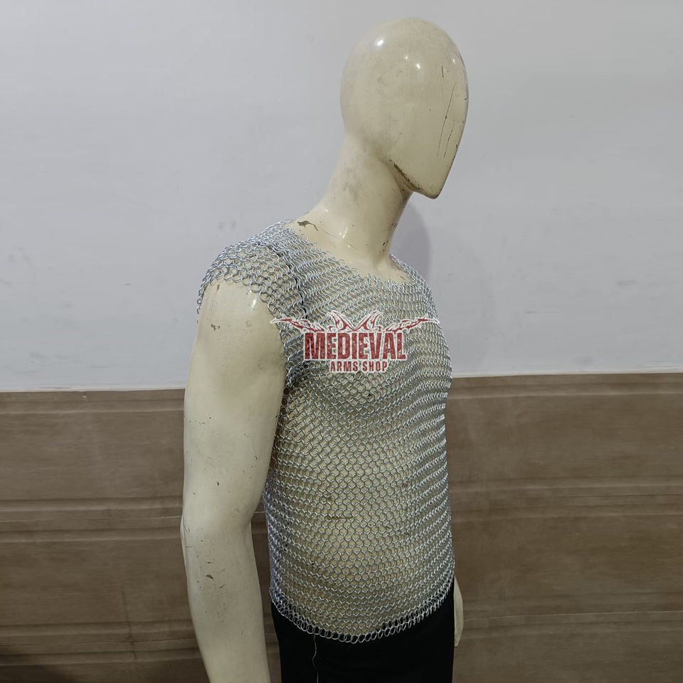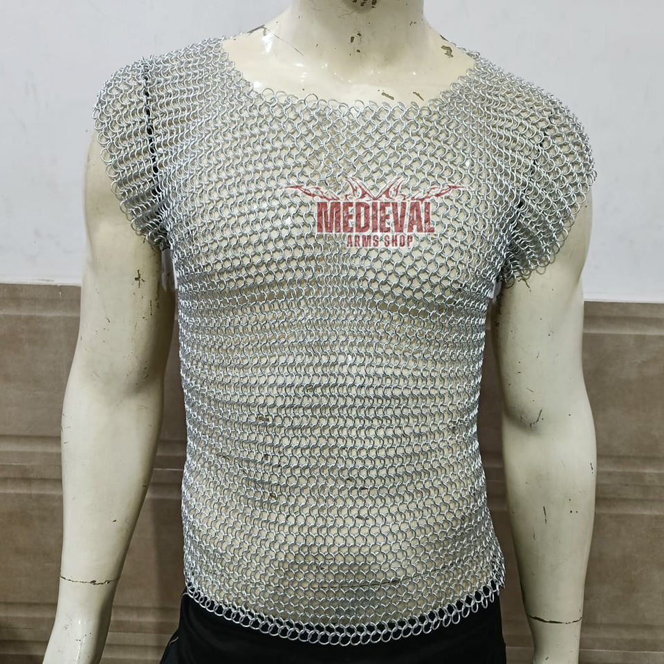 Handmade Medieval Sleeveless Chainmail Shirt Aluminum Butted 10mm Ring Hauberk Armor for Historical Reenactment and Cosplay
