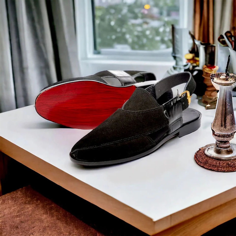 Handmade Men Peshawari Chappal Leather Embroidered Logo Comfortable Outdoor Durable Solid Pattern Shoes