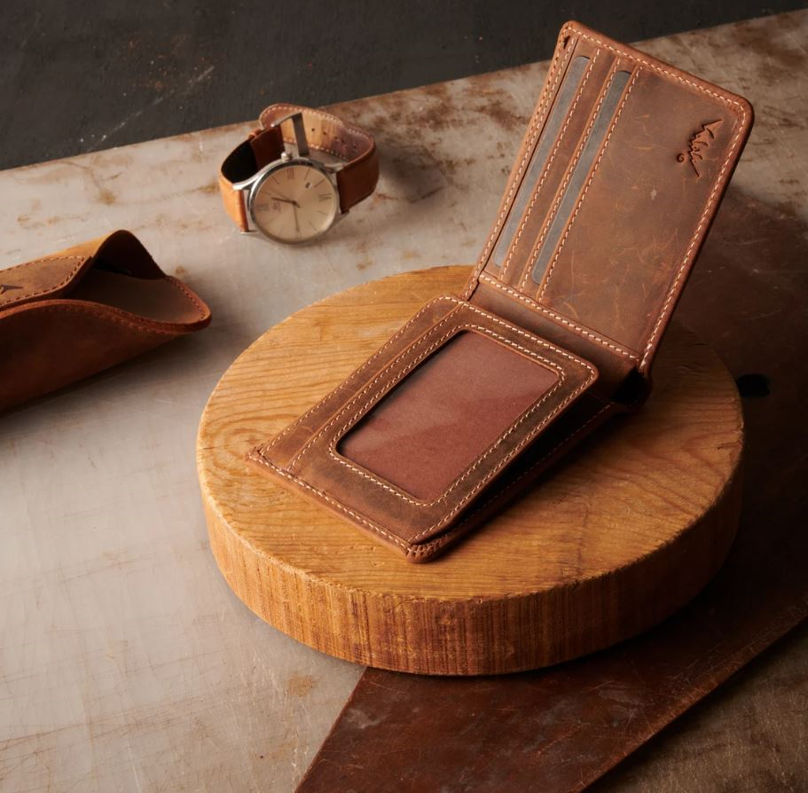 Handmade Men's Crazy Horse Biofold Genuine Cowhide Leather RFID Feature Short Satin Simple Style Full Grain Leather Gift Money