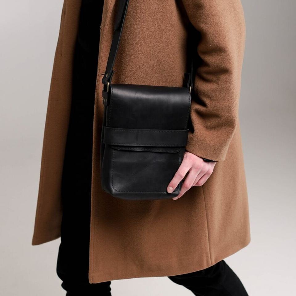 Handmade Men's Small Crossbody Leather Shoulder Bag Cute Style Black LCS-0038 with Zipper Closure Custom Logo Mother's Day Gift