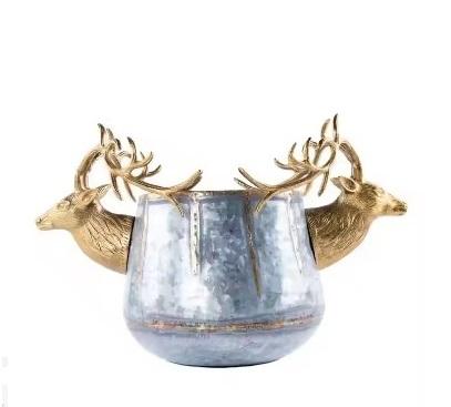 Handmade Metal Chiller Buckets with Reindeer Heads Beverage Coolers Ice Tubs Bottle Storage Buckets with Side Ends